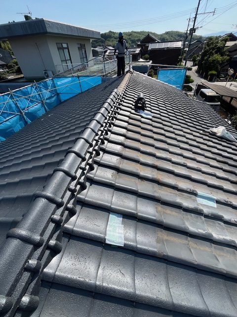 セメント瓦から三州陶器防災平板瓦に葺き替え工事です