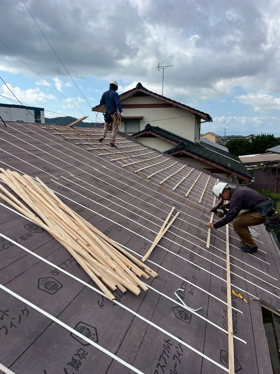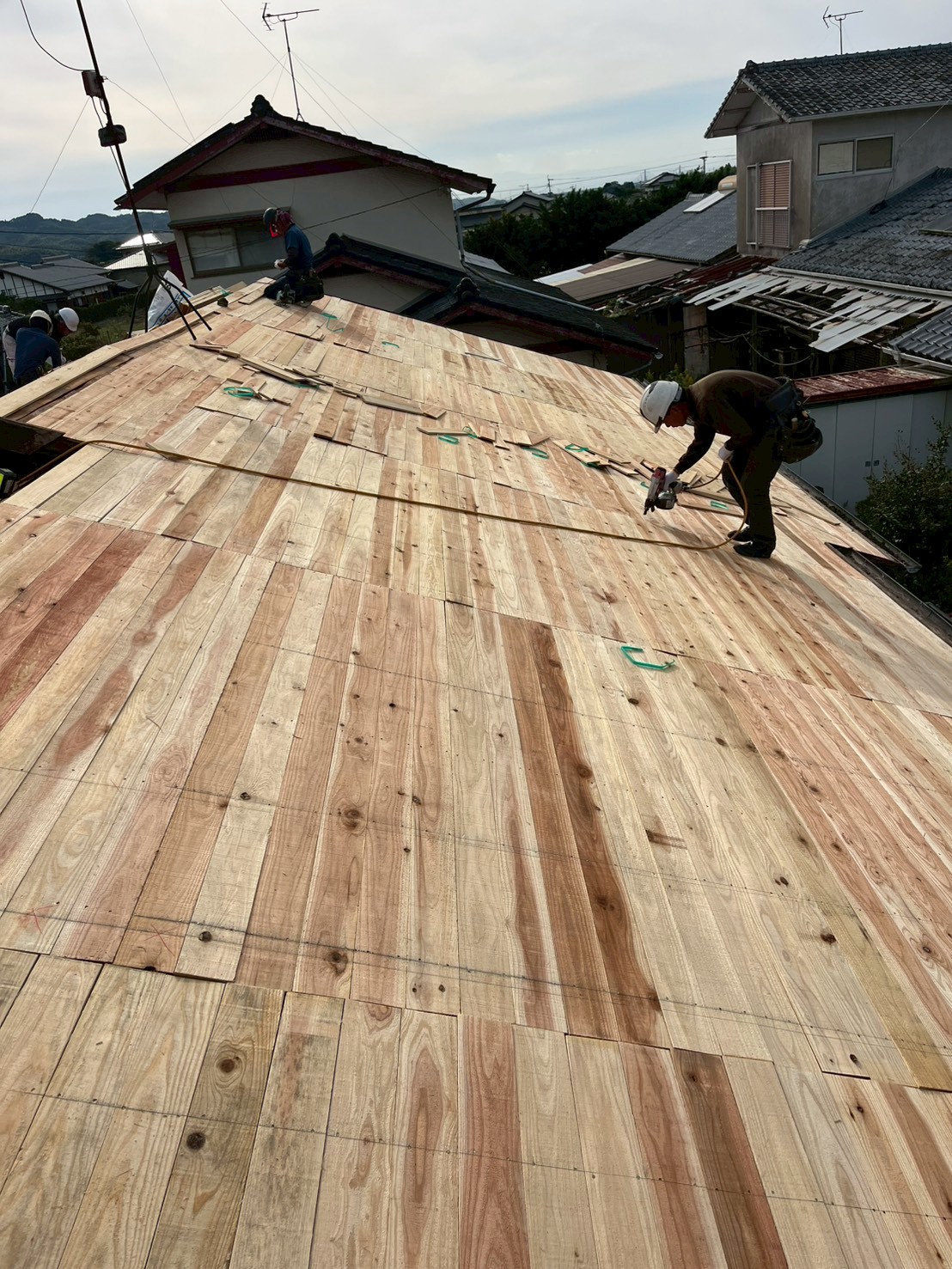 野地板を貼り足すことで、瓦を留め付ける釘もしっかり効くので台風等の強風が吹いても安心です。