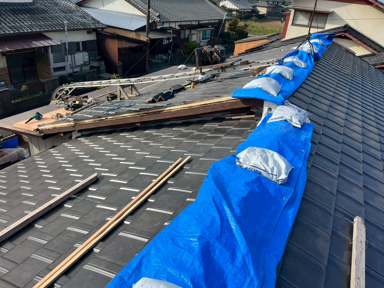 みやま市の既存セメント瓦葺きの住宅の葺き替え工事です